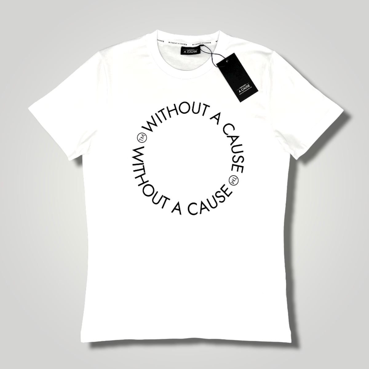 Our sporty Without A Cause Circular Tee from the original collection is available in two colours Black and White . Crafted from 100% cotton in our original slim block. Without A Cause branding and swing tags.