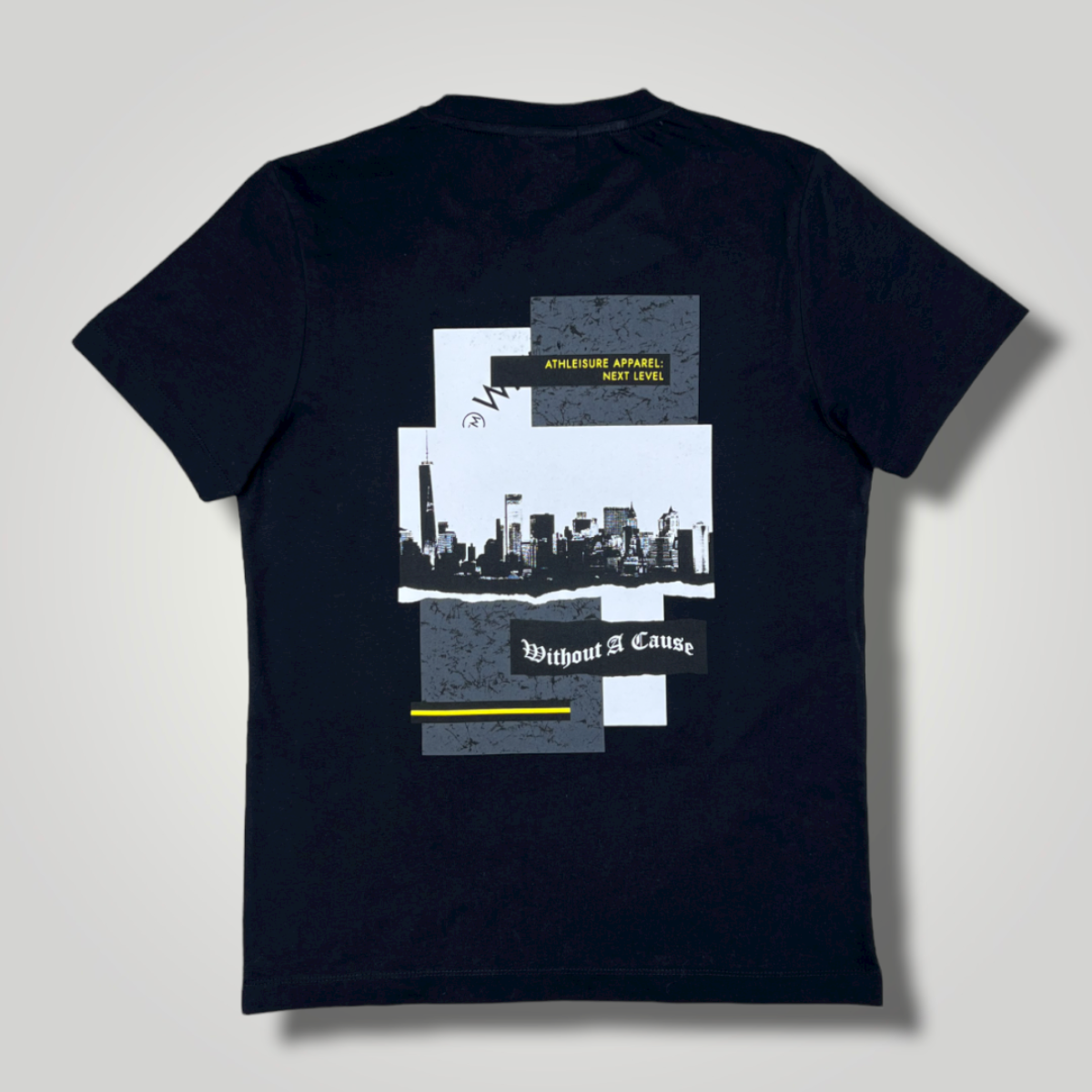 Our original city graphic tee from the Next Level Collection is available Black with our signature yellow highlight. Crafted from 100% cotton in our original slim block. Without A Cause branding and swing tags.